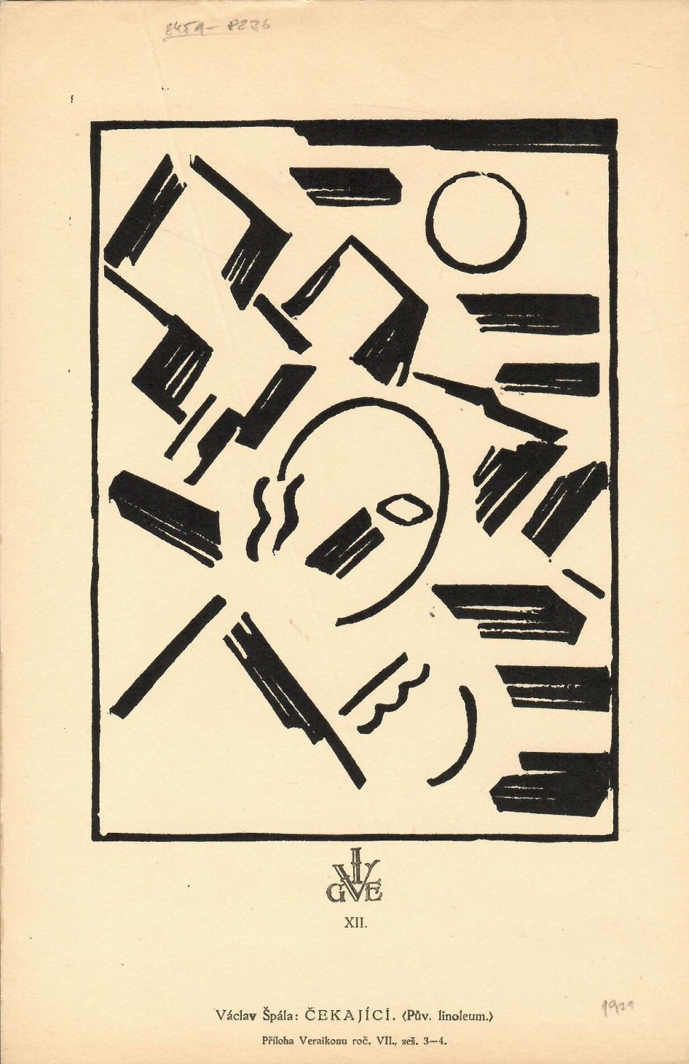 Původní linořez, který vyšel jako příloha umělecké revue Veraikon, ročník VII, sešit 3-4.