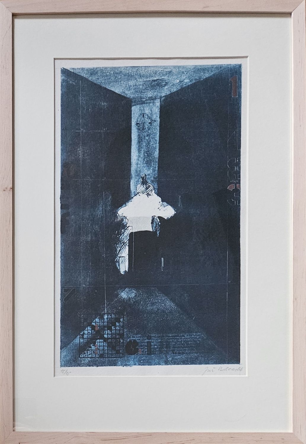 Původní barevná litografie, vpravo dole pod deskou autorem podepsaná a datovaná, vlevo dole číslovaná 15/15. - Práce je zasazena v hluboké kartonové paspartě, která je vsazena do světlého rámu z olše.