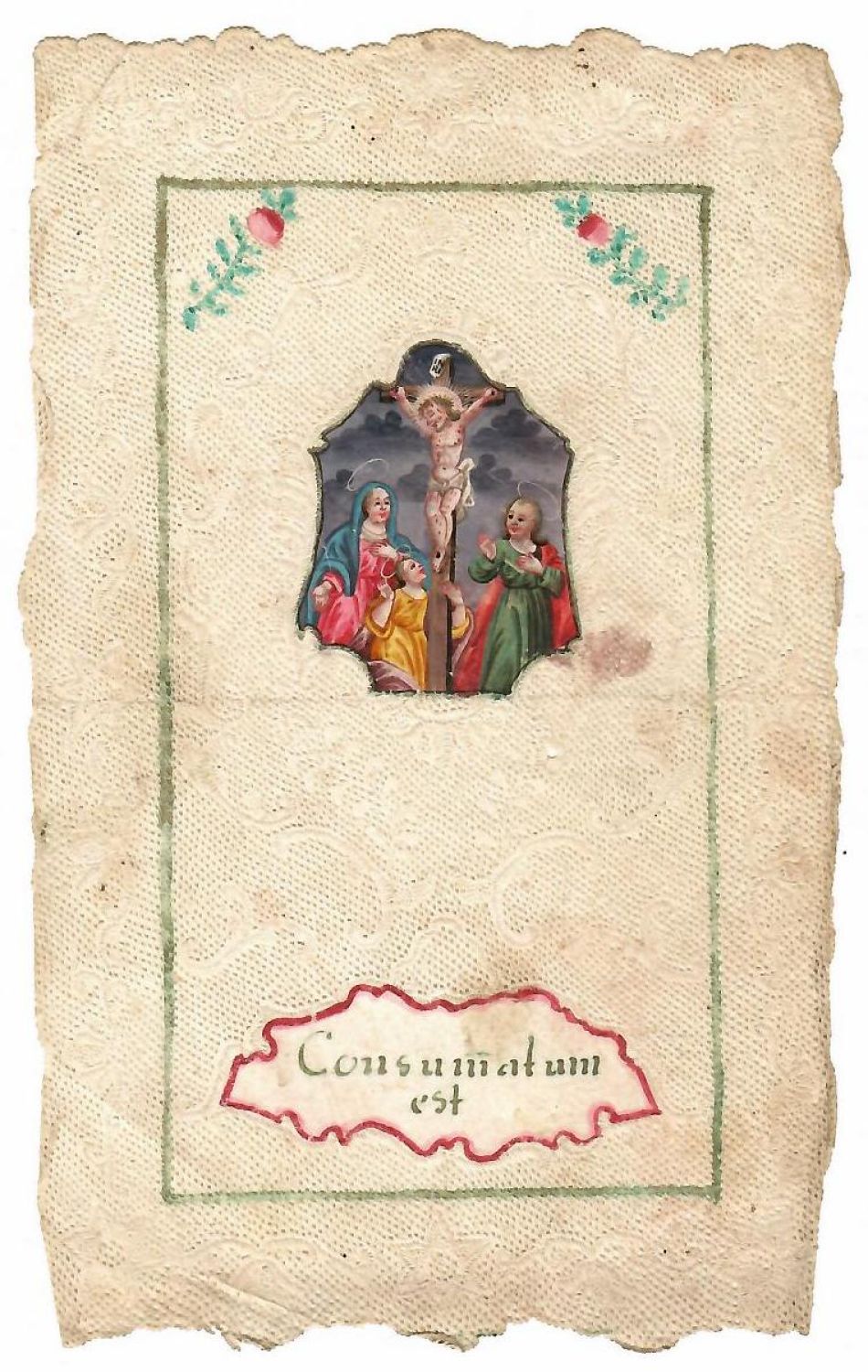 Canivet v papíře s miniaturou. Papír lehce zašpiněný a uprostřed podélně přeložený (lehce patrné z rubové strany).