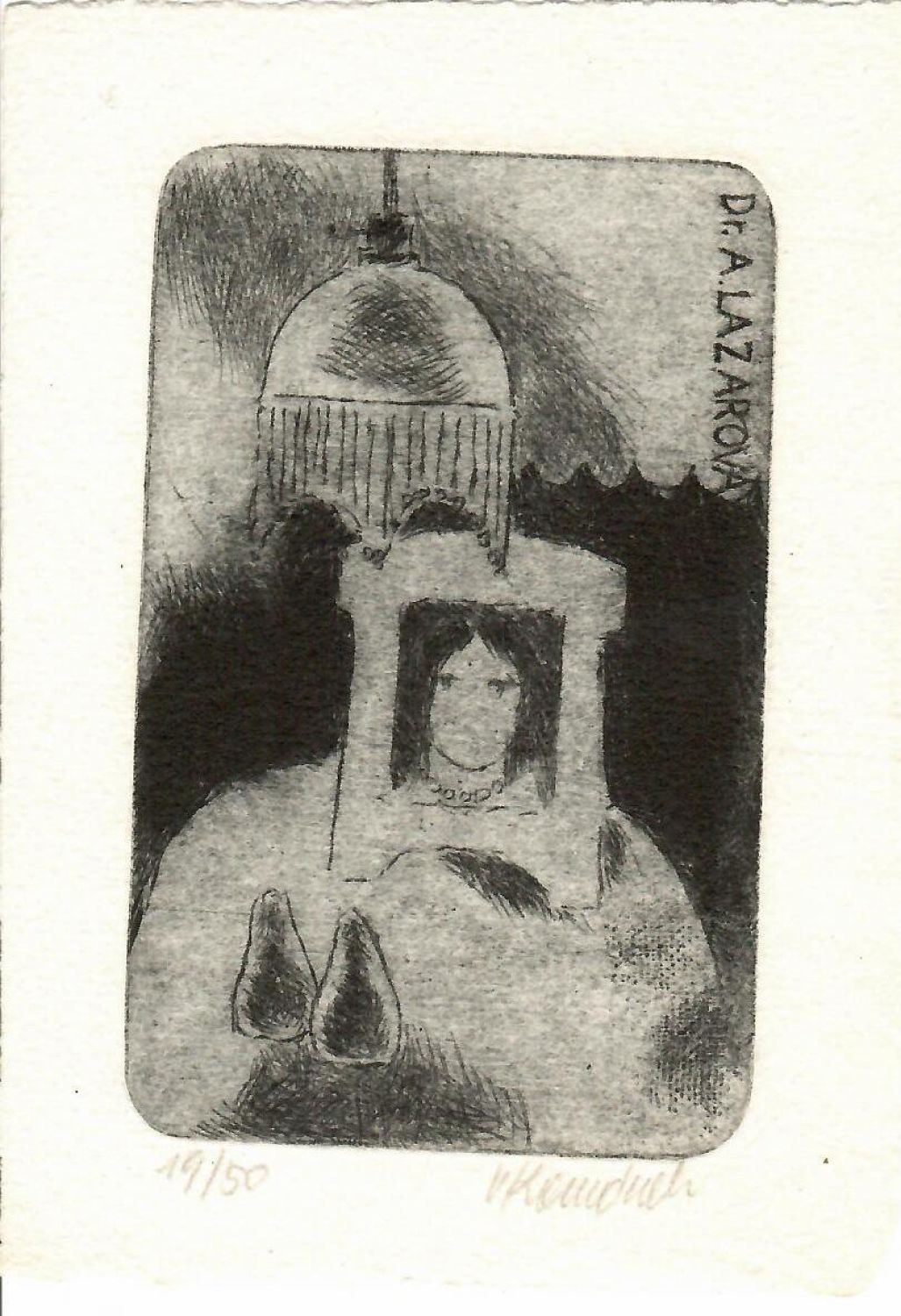 Lept o rozměru desky 115 x 71 mm na papíře o rozměru 147 x 104 mm. Při pravém spodním okraji tisku autorem tužkou signováno. Exemplář č. 19/50.