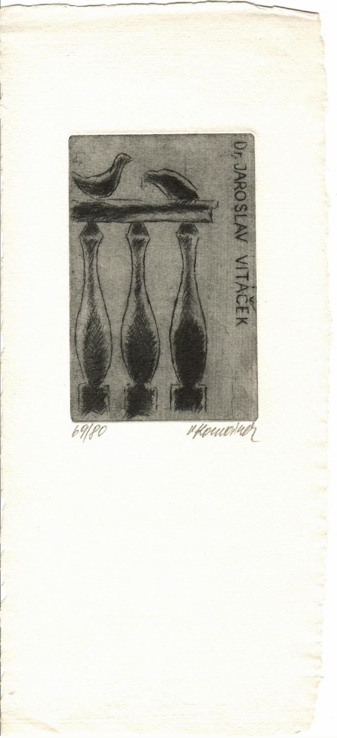 Lept o rozměru desky 115 x 75 mm, volný list o celkovém rozměru 290 x 130 mm. Při spodním okraji grafiky autorem tužkou signováno a číslováno. Č.ex. 69/80.
