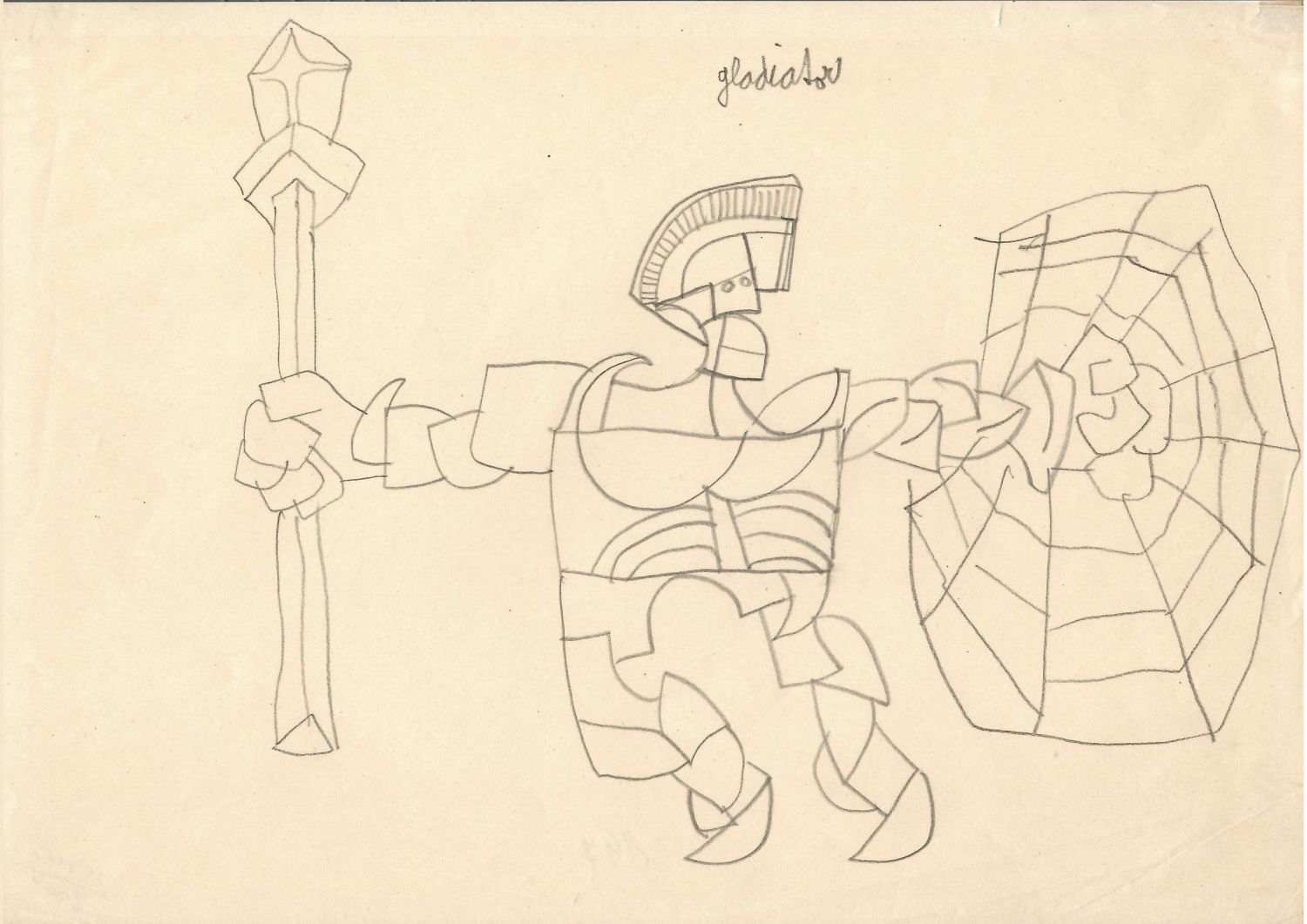 Kresba tužkou, na zadní straně v obou horních rozích stopy po předchozí adjustaci.
