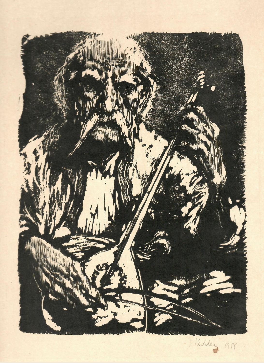 Linoryt, autorem při spodním okraji tisku tužkou signováno a datováno. Volný list.