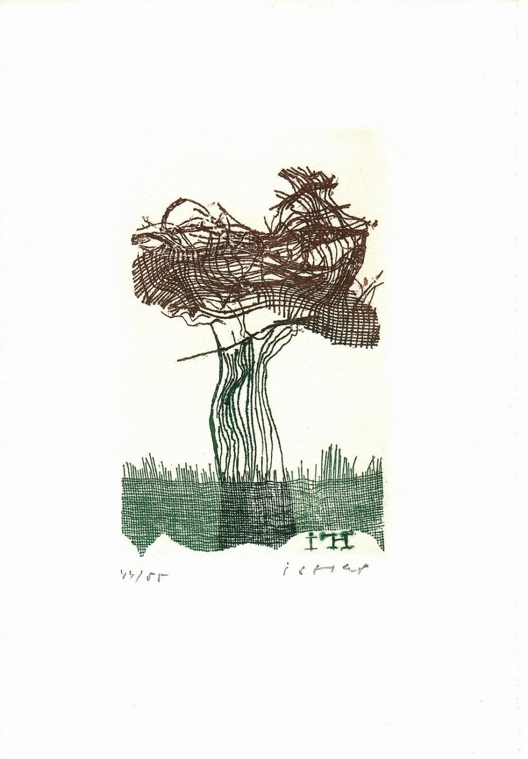 Lept o rozměru tisku 115 x 75 mm. Při levém spodním okraji tisku autorem tužkou číslováno 44/55, při pravém spodním okraji tisku signováno.