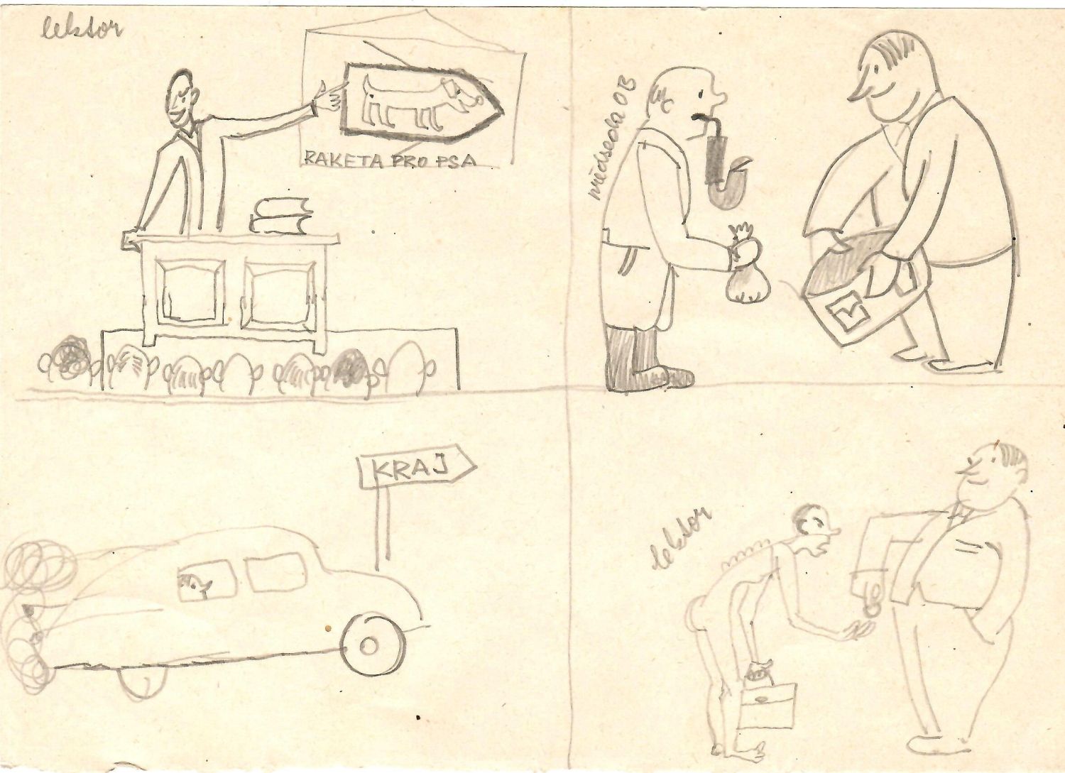 Původní kresba tužkou na papíře o rozměru 145 x 210 mm, počátek 60. let, nepodepsaná.
