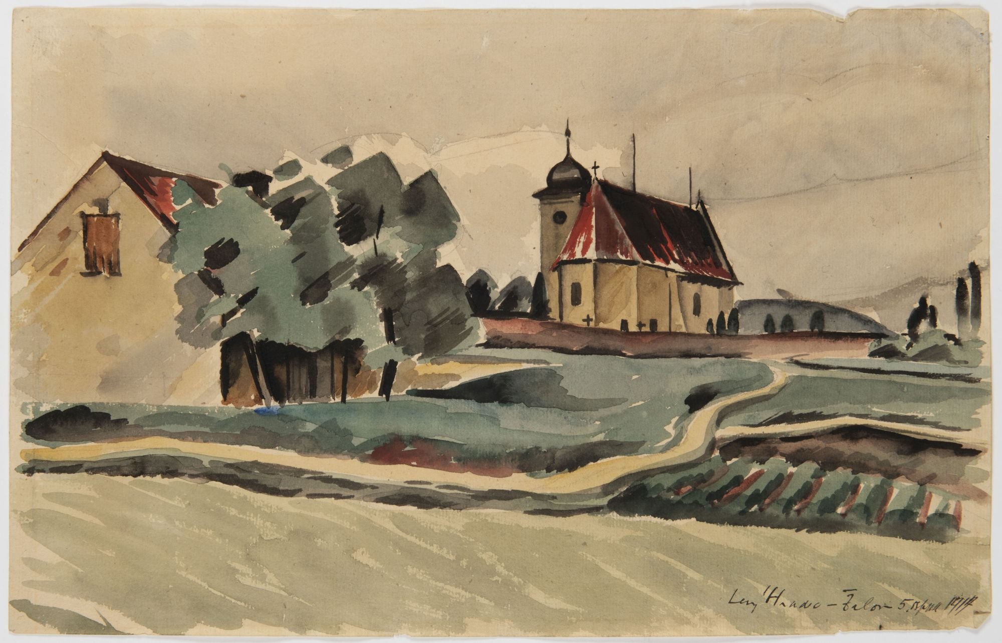 Akvarel na papíře, vpravo dole datovaný "5. srpna 1917". Práce je opatřena hlubokou paspartou a světlým přírodním rámem z olše. Akvarel pochází z pozůstalosti Bedřicha Feuersteina.