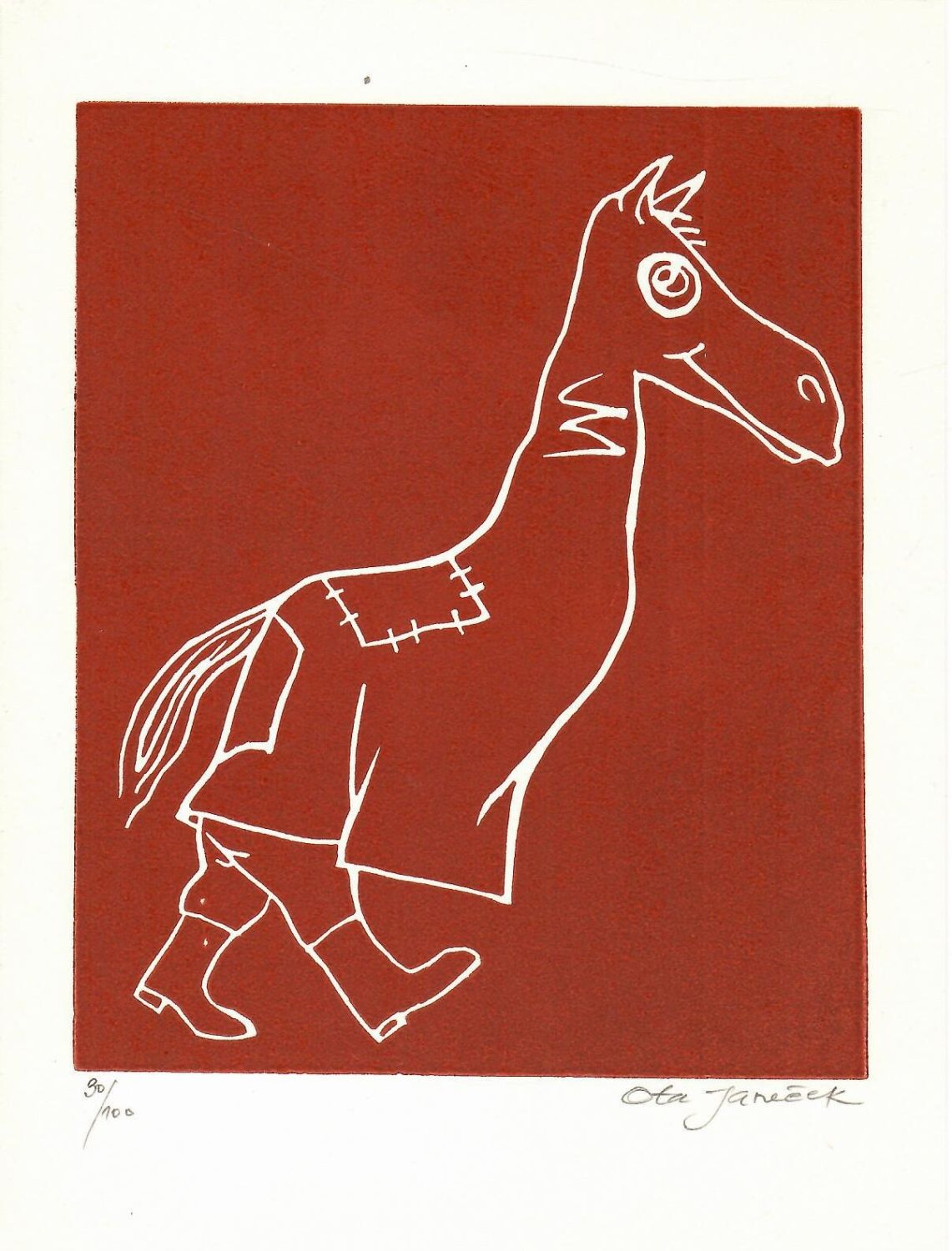 Původní linoryt, autorem při spodním okraji tisku tužkou signováno a číslováno 30/100. Na zadní straně listu razítko "Ota Janeček". Volný list. Loubal, L.: Ota Janeček Soupis grafického díla č. 672.