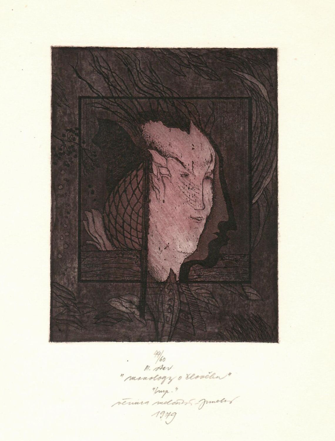 Lept o rozměru tisku 152 x 118 mm. Autorkou při spodním okraji tisku tužkou napsán název díla, číslováno, datováno a signováno. III. stav, č.ex. 44/60.