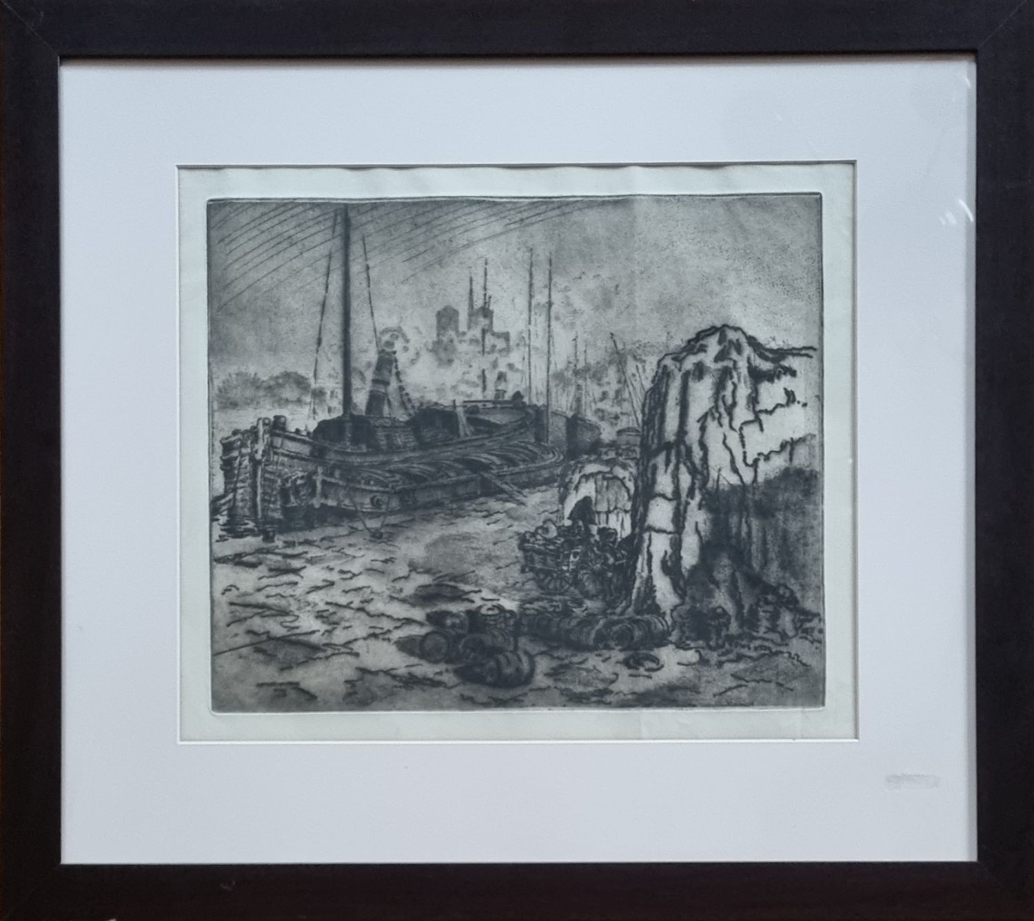 Měkký kryt, vpravo dole v desce signovaný, datovaný a s uvedením místa tisku (Paris). Práce je opatřena bílou hlubokou paspartou a zarámována v tmavě hnědém dřevěném rámu o celkovém rozměru 610 x 680 mm. List je ve své pravé části podélně lehce zvrásněný.
