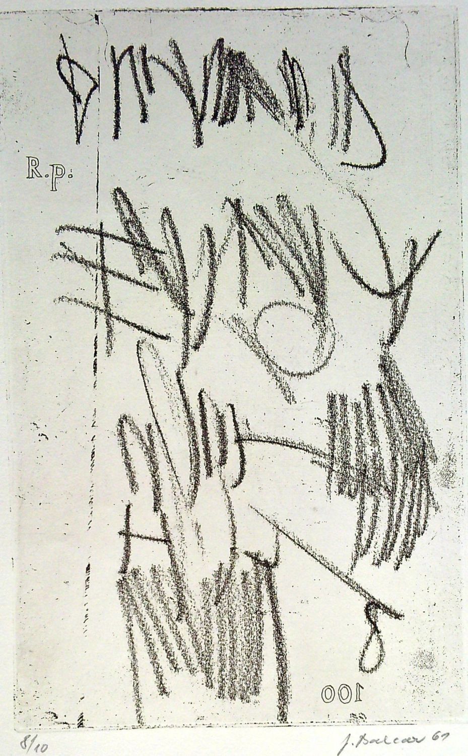 Akvatinta o rozměru desky 247 x 159 mm, tištěno na papíře C.M.Fabriano 480 x 333 mm, autorem vpravo dole tužkou signováno a datováno, vlevo dole číslováno 8/10. - Reprodukováno v monografii Marie Klimešové a Jana Rouse "Jiří Balcar", str. 79, obr. 88. Provenience: zakoupeno od autorova syna.