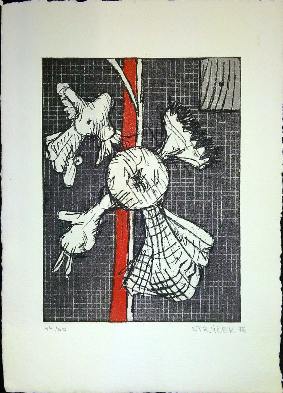 Kombinovaná technika, rozměr tisku 197 x 147 mm. Autorem při spodním okraji tisku signováno, datováno a číslováno. Č.ex. 44/60.
