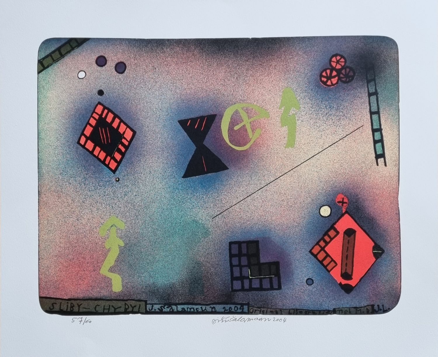 Barevná litografie, volný list, autorem uprostřed dole v desce signovaný, vlevo dole název, vpravo dole tiskař. Uprostřed dole pod deskou autorem tužkou podepsaný a datovaný, vlevo dole tužkou číslo tisku 56/60. Provenience: z autorovy pozůstalosti.