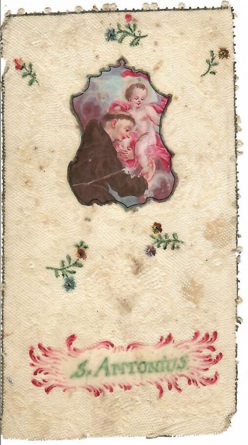 Canivet na papíře s miniaturou sv. Antonína malovanou kvašem. Lehce zašpiněný.