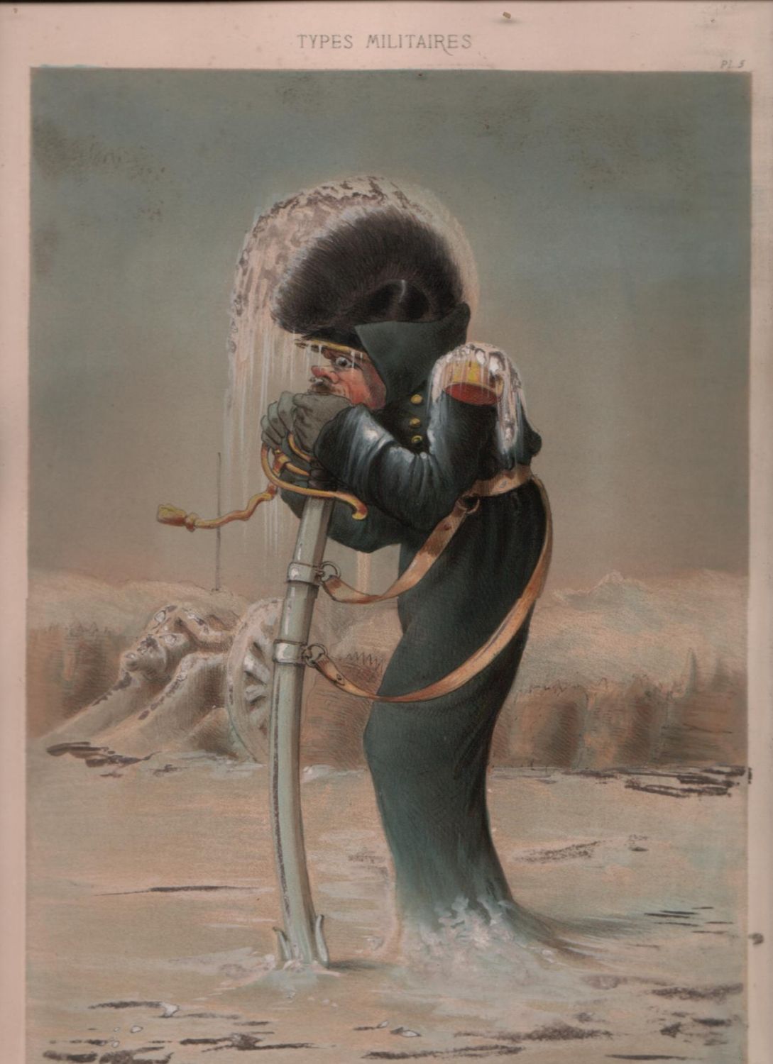 Barevná litografie. Volný list z alba "Types militaires", jež vydali v Paříži Dusaq et Cie Editeurs.