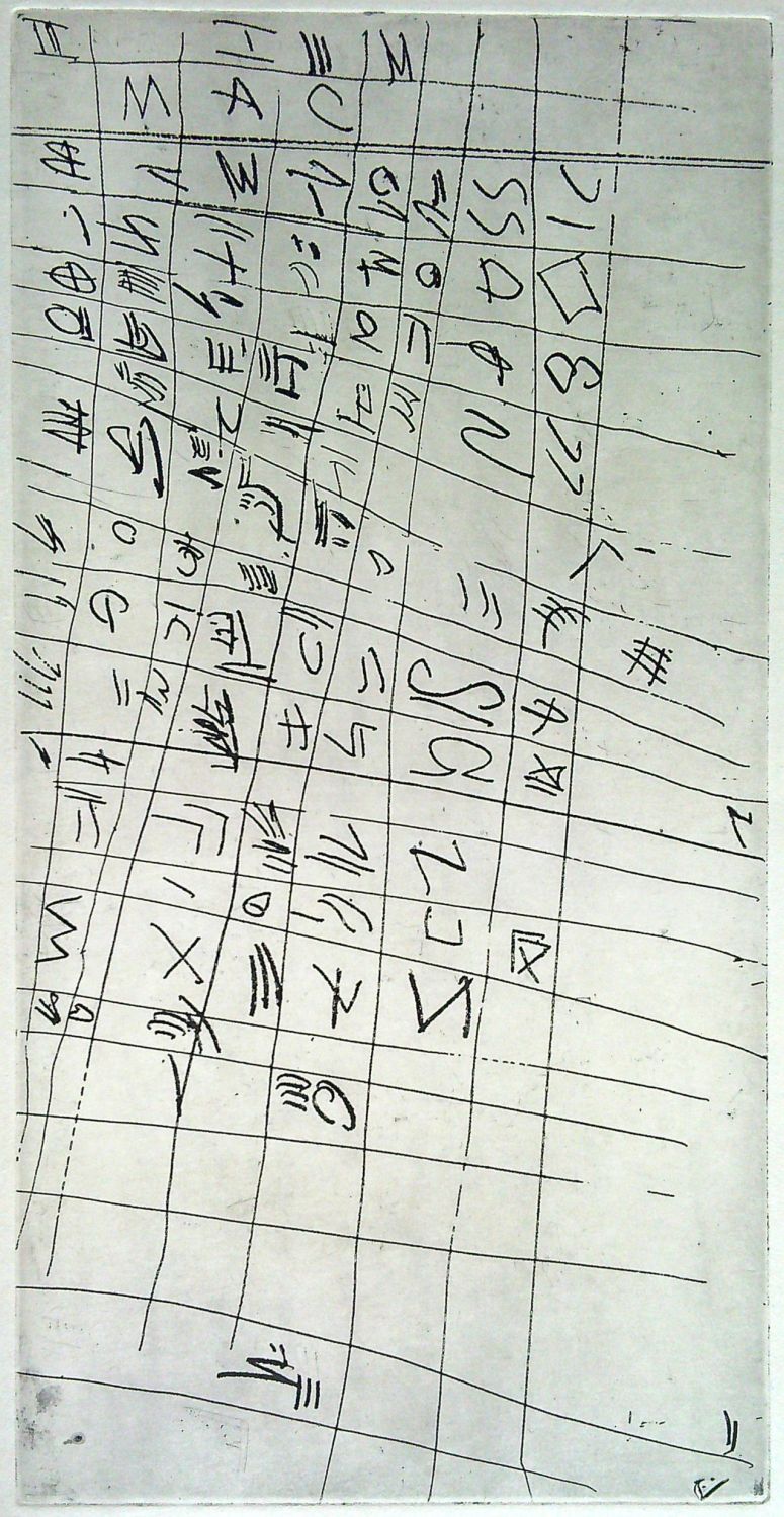 Nesignovaná původní akvatinta o rozměru desky 325 x 164 mm. Volný list tužšího papíru 536 x 367 mm, při spodním okraji tužkou název a datace. Reprodukováno v monografii Marie Klimešové a Jana Rouse "Jiří Balcar", str. 101, obr. 119. - Provenience: zakoupeno od autorova syna.
