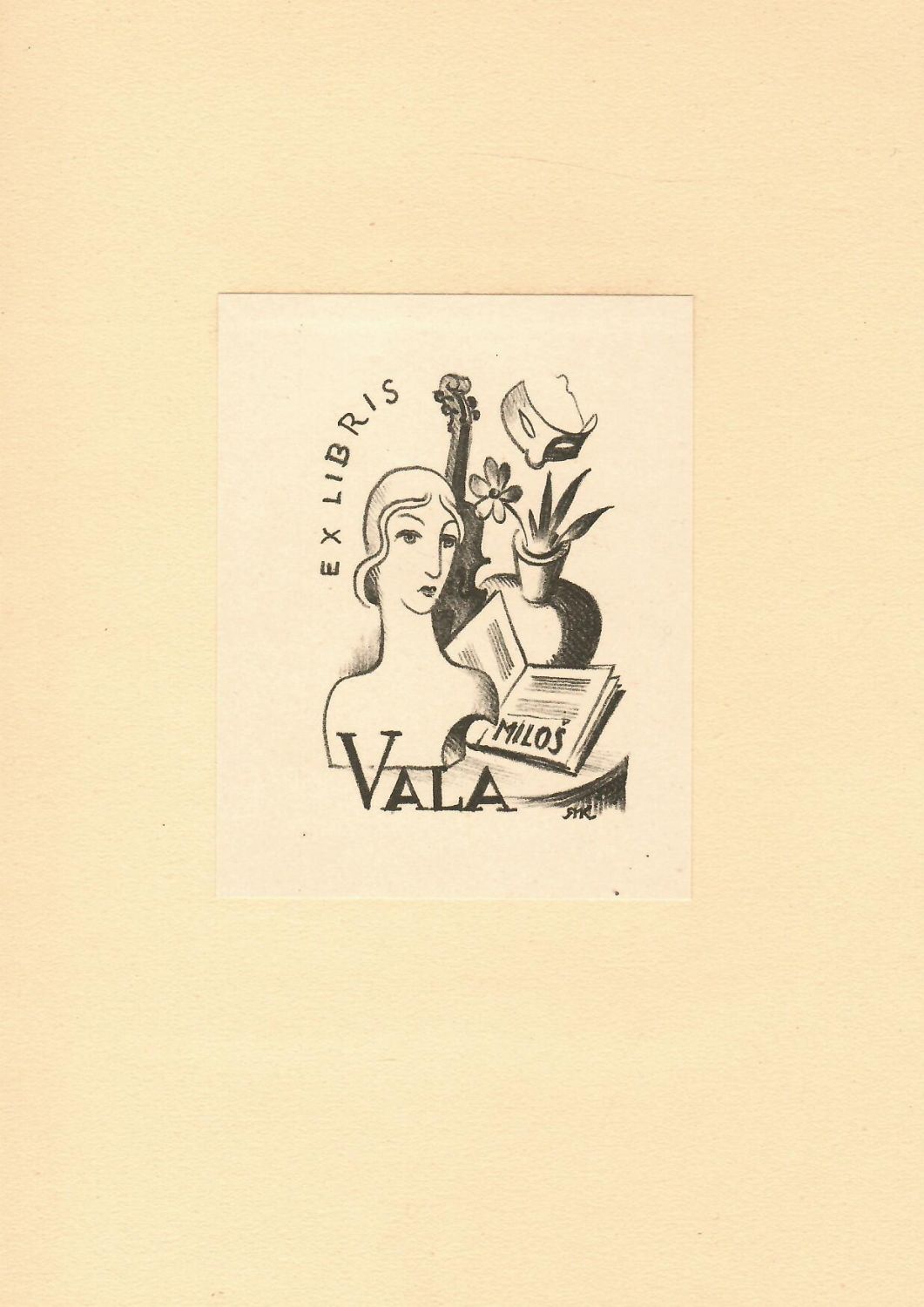 12 litografovaných, v desce iniciálou signovaných exlibris cca 12 x 9 cm, montovaných na žlutobílé listy tužšího papíru.