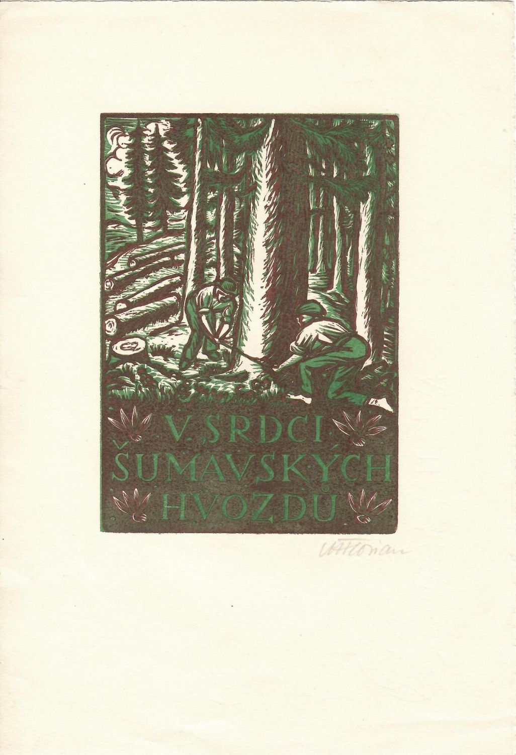 Barevný dřevoryt, autorem tužkou signováno při pravém spodním rohu tisku.