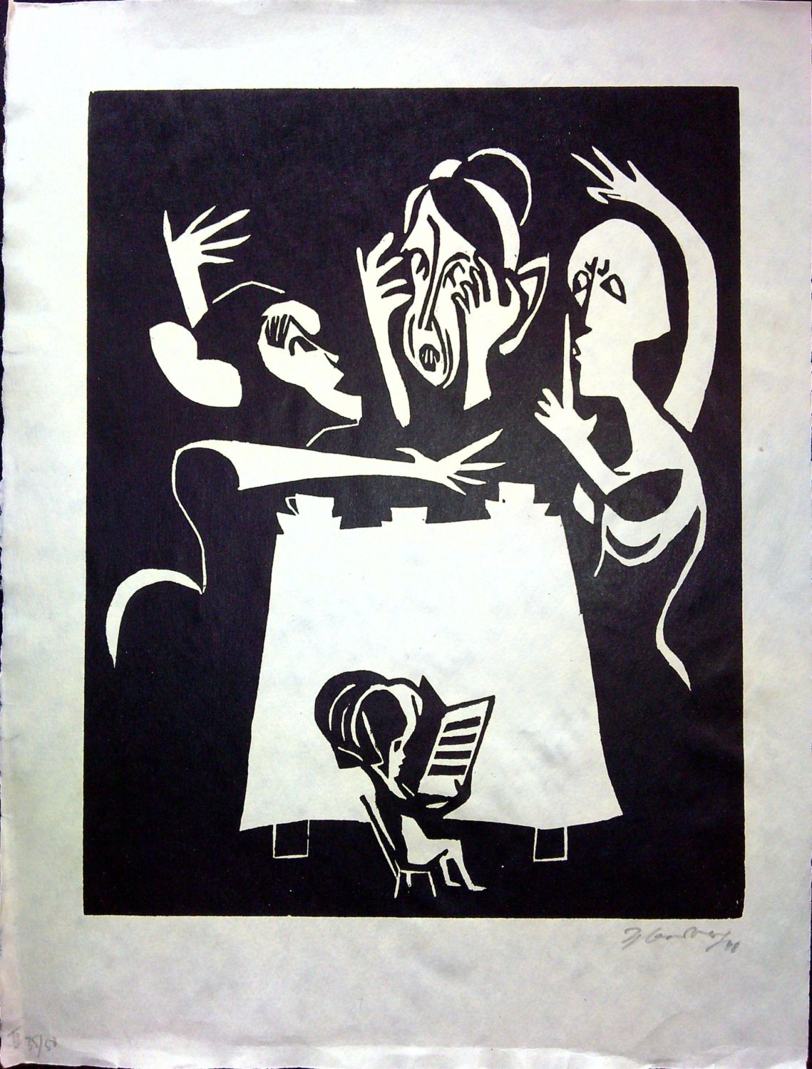 Původní dřevoryt tištěný na chamois velínu, vpravo dole autorem tužkou podepsaný a datovaný, vlevo dole číslovaný "35/50", volný list.