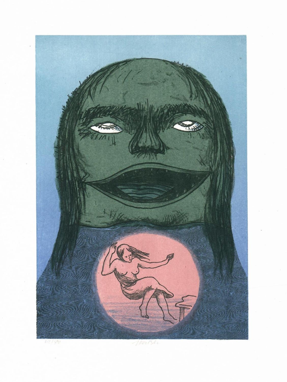 Serigrafie o rozměru tisku 206 x 144 mm. Celkový rozměr listu je 295 x 208 mm. Autorem při levém spodním okraji tisku tužkou číslováno (42/80), při pravém spodním okraji tisku tužkou signováno.