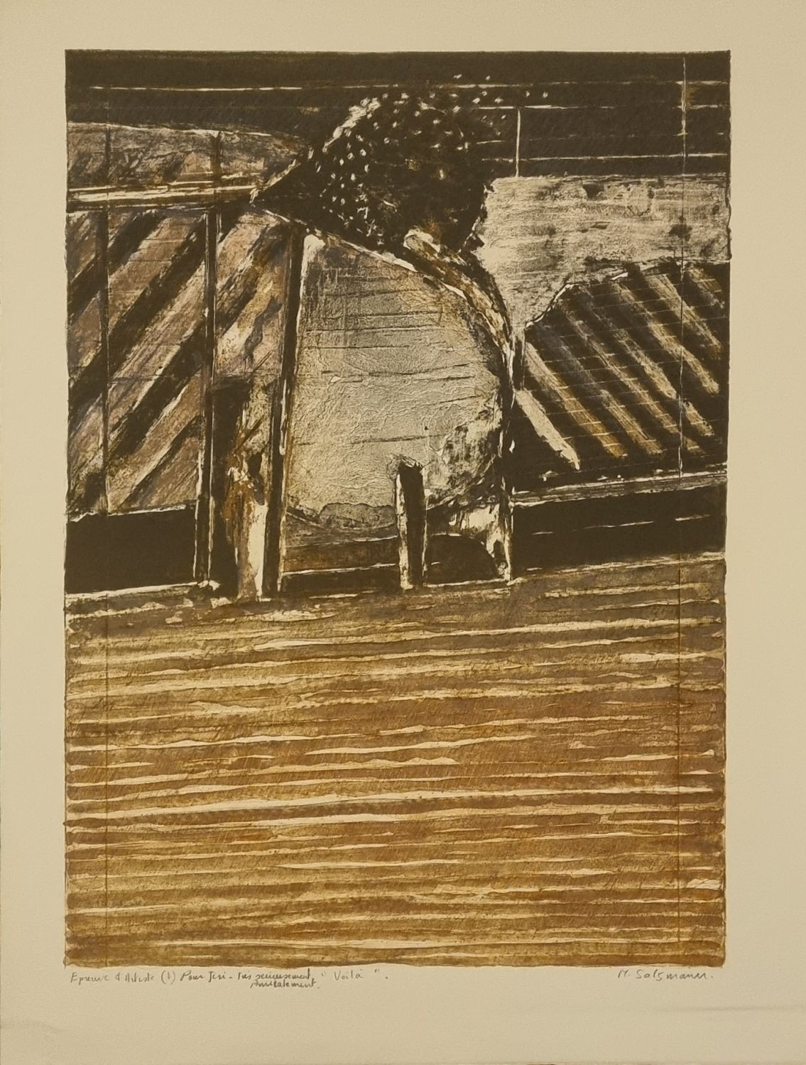 Barevná litografie tištěná na ručním francouzském papíře Arches, autorem vpravo dole tužkou podepsaná, vlevo dole autorův přípis ve francouzštině s informací o autorském tisku a název díla. Volný list.