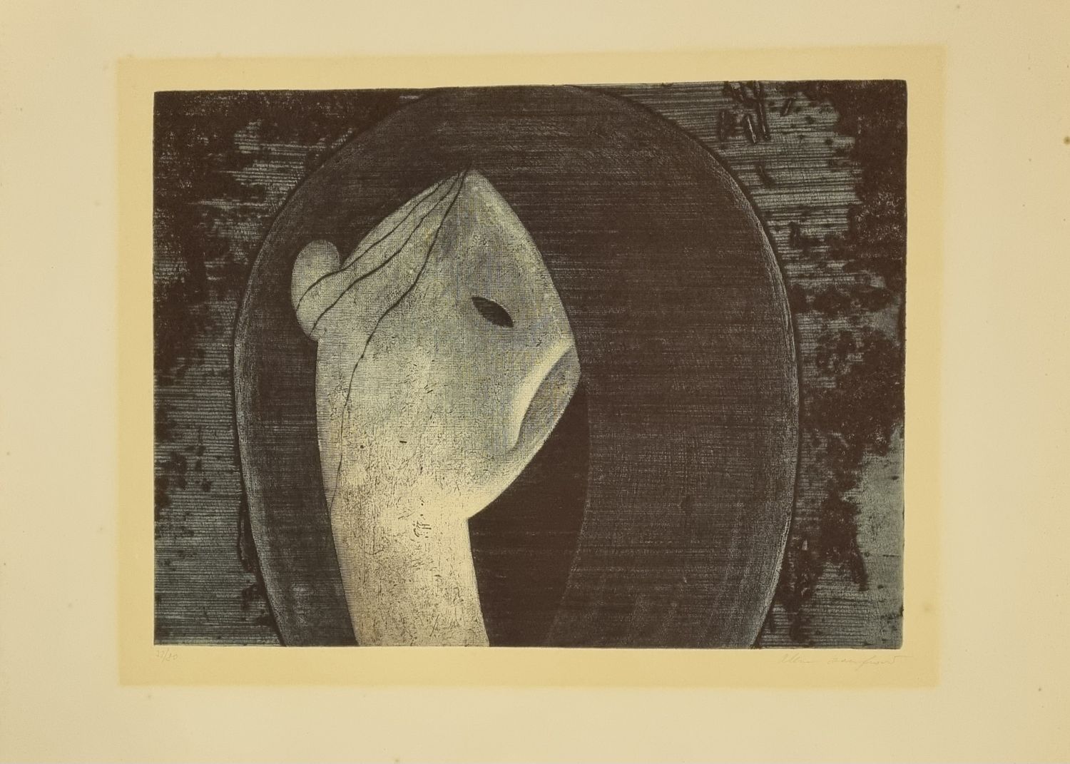 Barevný lept autorkou vpravo dole tužkou podepsaný, vlevo dole číslo tisku 31/80, na rubu autorkou tužkou napsaný název.