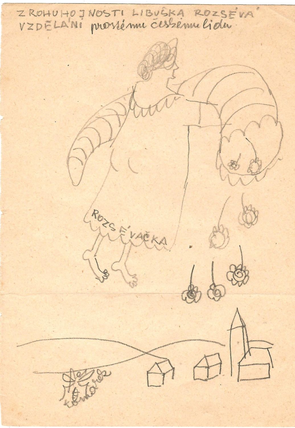 Původní kresba tužkou na papíře o rozměru 210 x 150 mm, vlevo dole autorem podepsaná, přelom 50. a 60. let. Při spodní části podélně přeložená.