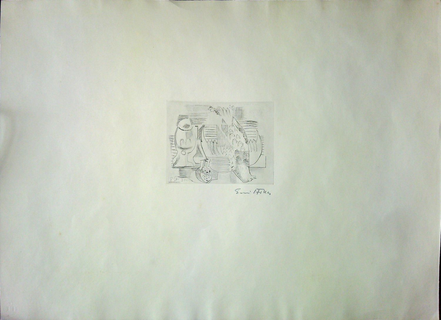 Suchá jehla autorem vpravo dole pod deskou tužkou podepsaná. Při levém spodním okraji v desce rytý autorův monogram a datace. Jeden ze 30 tisků, tištěno na tužší papír, na jehož rubu je při spodním pravém okraji suché razítko "H ECO". (Berka: Soupis grafického díla E. Filly" č. 28).